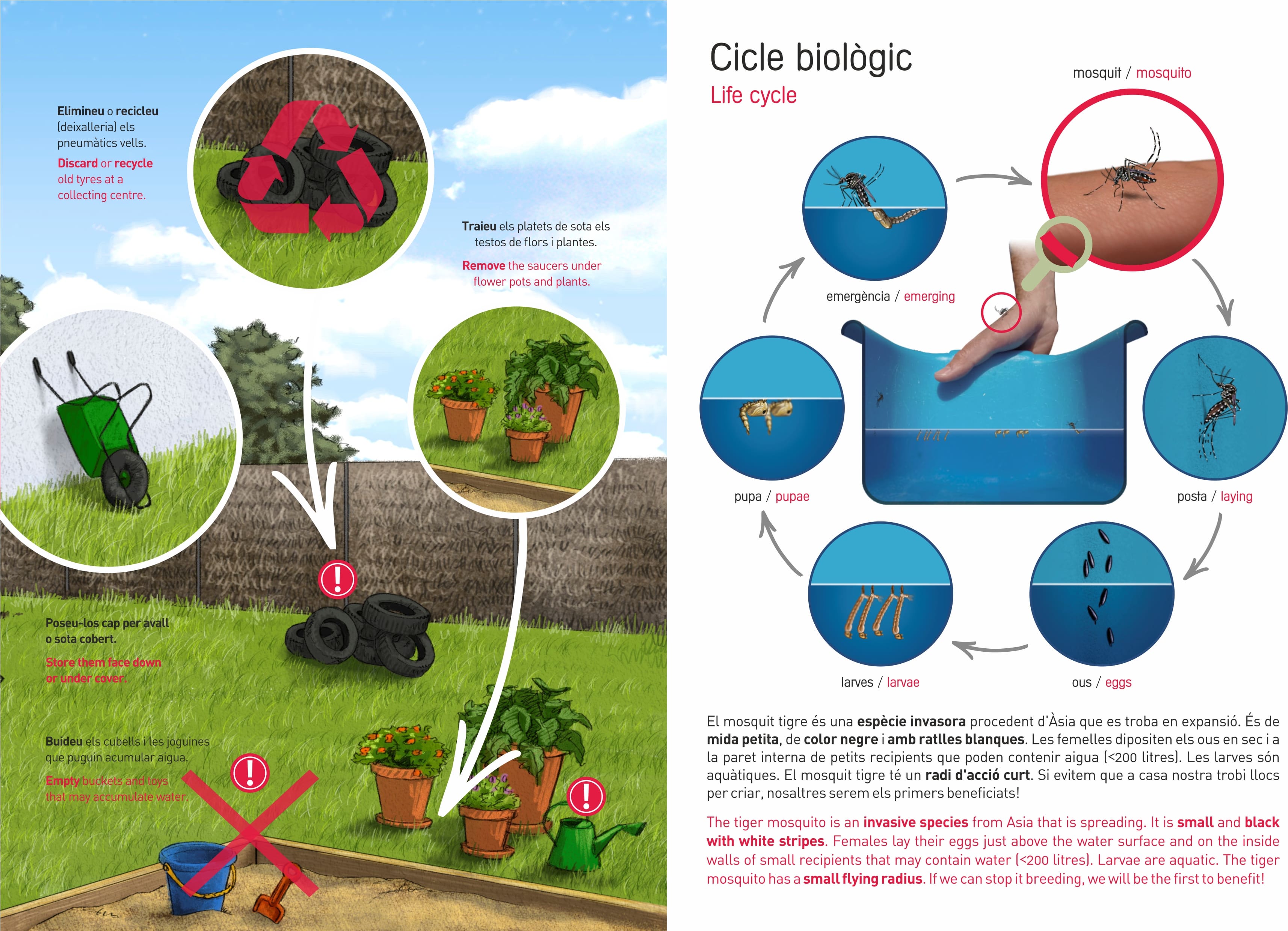 Es pot desenvolupar en qualsevol recipient que contingui aigua durant uns set dies. El mosquit pon ous i es desenvolupa en espais petits amb aigua estancada. No els agrada posar els ous en aigües en moviment ni en masses d’aigua grans. El clima i les hores de llum solar són més factors que condicionen el cicle vital del mosquit. Se’n poden trobar actius des de començament de maig fins a final d’octubre, però segons les temperatures aquest període pot variar.